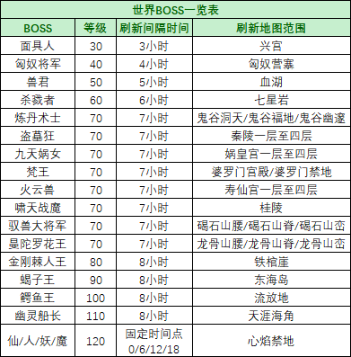 1.2 BOSS刷新在相应地图的随机坐标上,被玩家击败在刷新间隔时间过后,BOSS重生于相应地图;