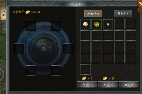 3、弃卦:可通过弃卦可将无用卦转化一定数量的金子;