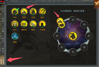 图二中,技能配置界面,将技能拖到带有加号的圈里。