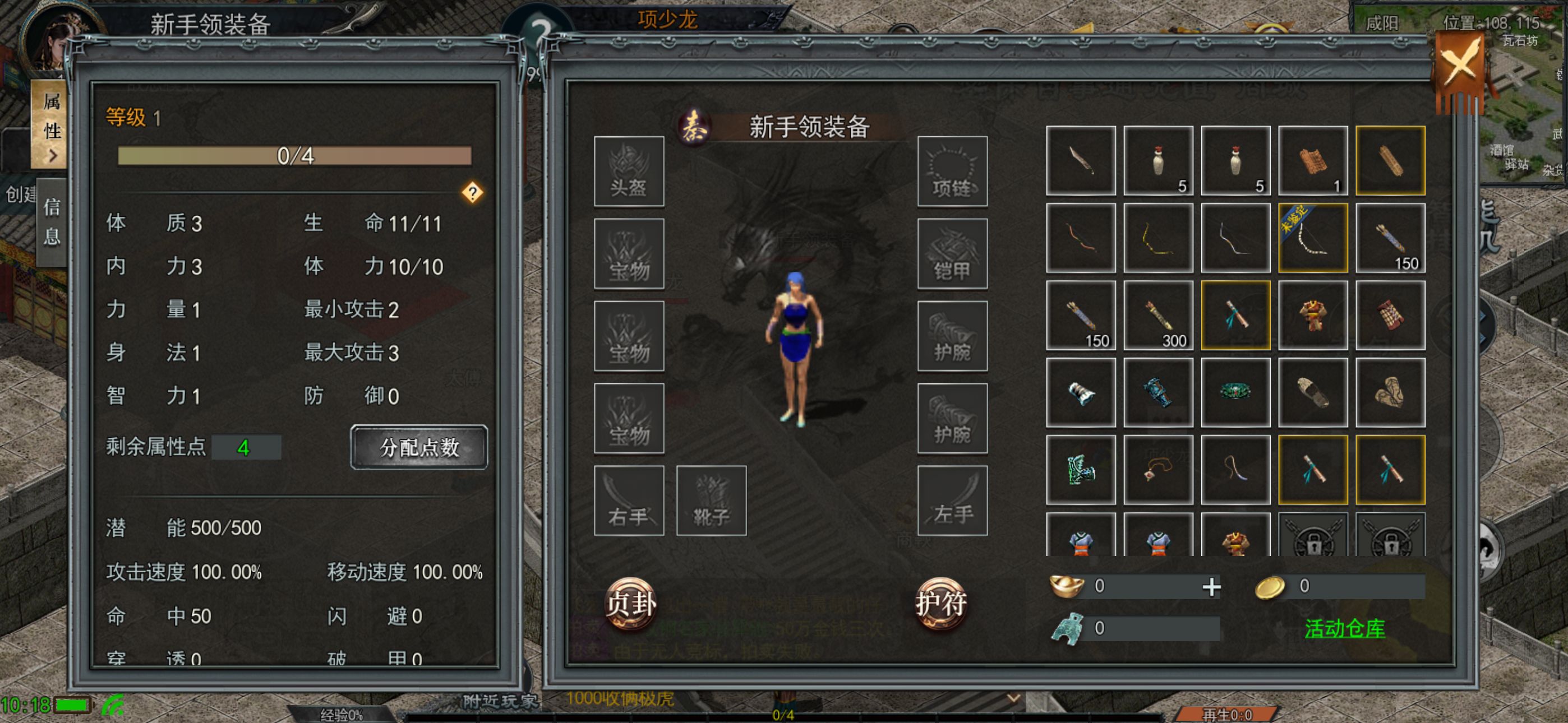 每个新建角色进入游戏后即可到本国皇宫前的 NPC 项少龙处领取新手装备。领取新手装备无级别限制,每个新手玩家都可以领取一次新手装备(领取前请清空包裹)。