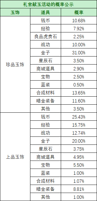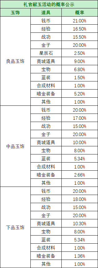 【公告】礼官献玉活动的概率公示 发布时间:2026/03/04